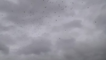 Three volunteers were at the museum at dusk last Saturday evening for a private mini function. We were treated to our own murmuration.