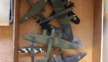 - Model Rebuild #3 – One of the 2nd batch of trays received for restorations. You have : Ju188, He100, Bf109, JU88, Ta152, JU88, Do217J & Ar234. Of these, one of the Ju88’s was used as a spares source for the rebuild of the second. The Do217J is in ‘storage’ pending finding undercarriage parts, too good to scrap yet; the rest have all been rebuilt/repainted/new decals as required and ready to return.