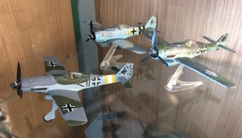 The first is of 3 x FW-190’s ( 2 D’s and 1 A). The aircraft on its undercarriage had a full repaint and new decals, the flyers both had either a full decal replace (D) or partial decal replace (A).