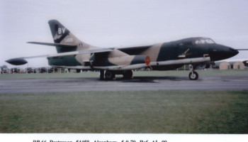 Steve has attached five photos, four ( RB66 Destroyer, F16 Fighting Falcon, Lightning XS928 and Spitfire G-FIRE are all from Alconbury air shows. The fifth, which looks to be a Royal Navy Rapide, is another unknown so any information on that would be appreciated. It is from a glass slide and unfortunately, the slide itself has deteriorated a bit (well a lot really)